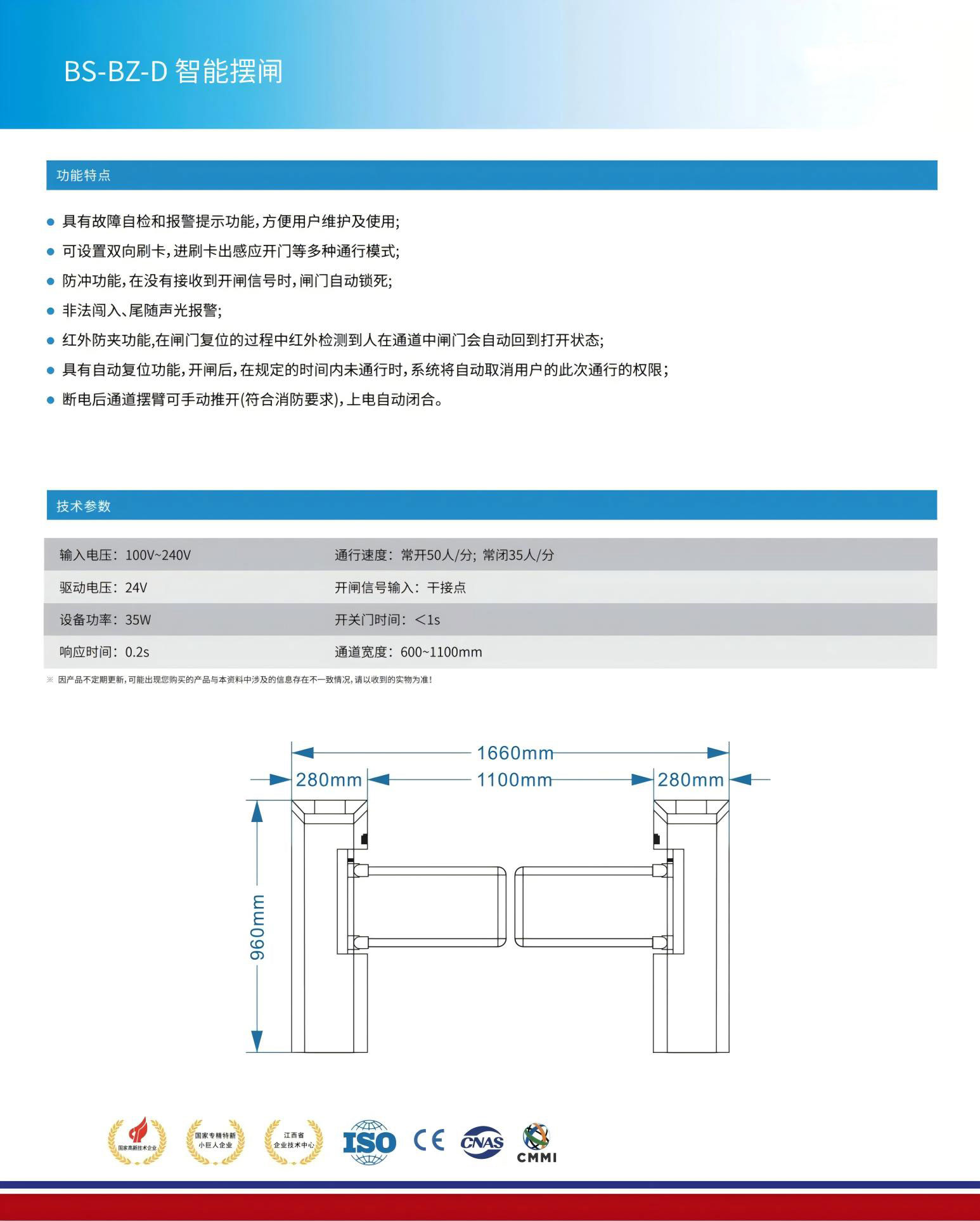 ● 斷電后通道擺臂可手動(dòng)推開(符合消防要求),上電自動(dòng)閉合。
