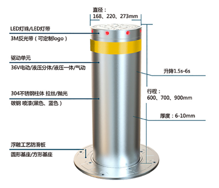 眾所周知,升降柱為控制車輛通行的設(shè)備。其主要是為敏感區(qū)域阻止非允許車輛強(qiáng)行闖入而設(shè)計(jì)研發(fā)的,具有較高的實(shí)用性、可靠性及安全性。在監(jiān)獄、銀行、政府貴賓通道、學(xué)校等地被廣泛應(yīng)用。