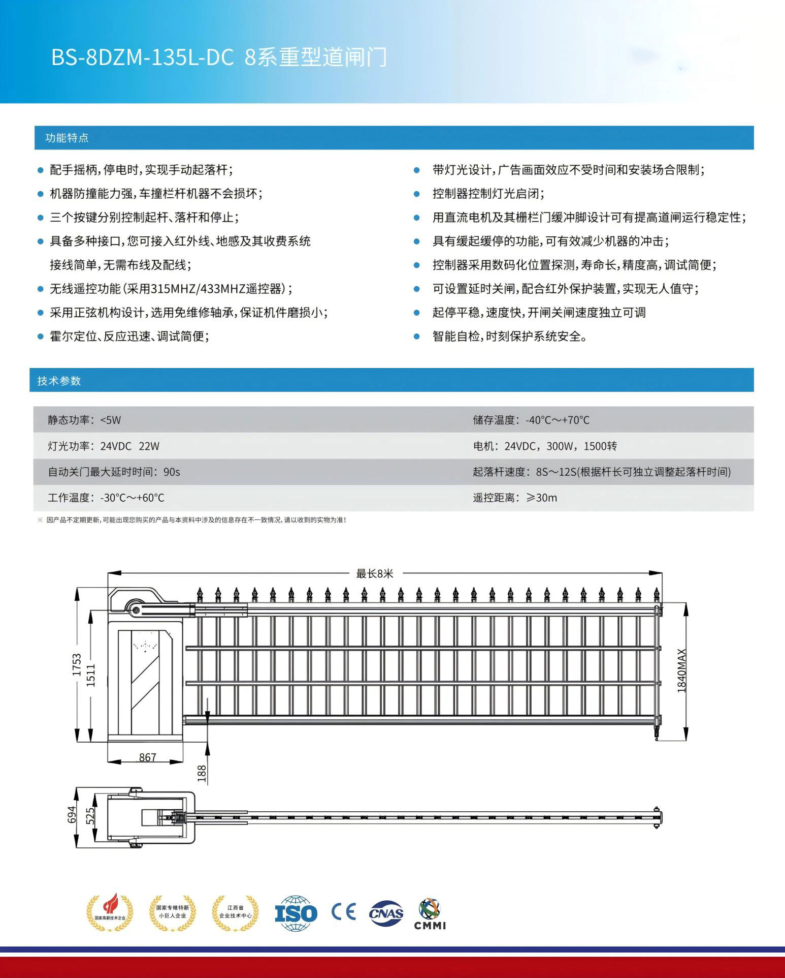 ● 用直流電機(jī)及其柵欄門(mén)緩沖腳設(shè)計(jì)可有提高道閘運(yùn)行穩(wěn)定性;