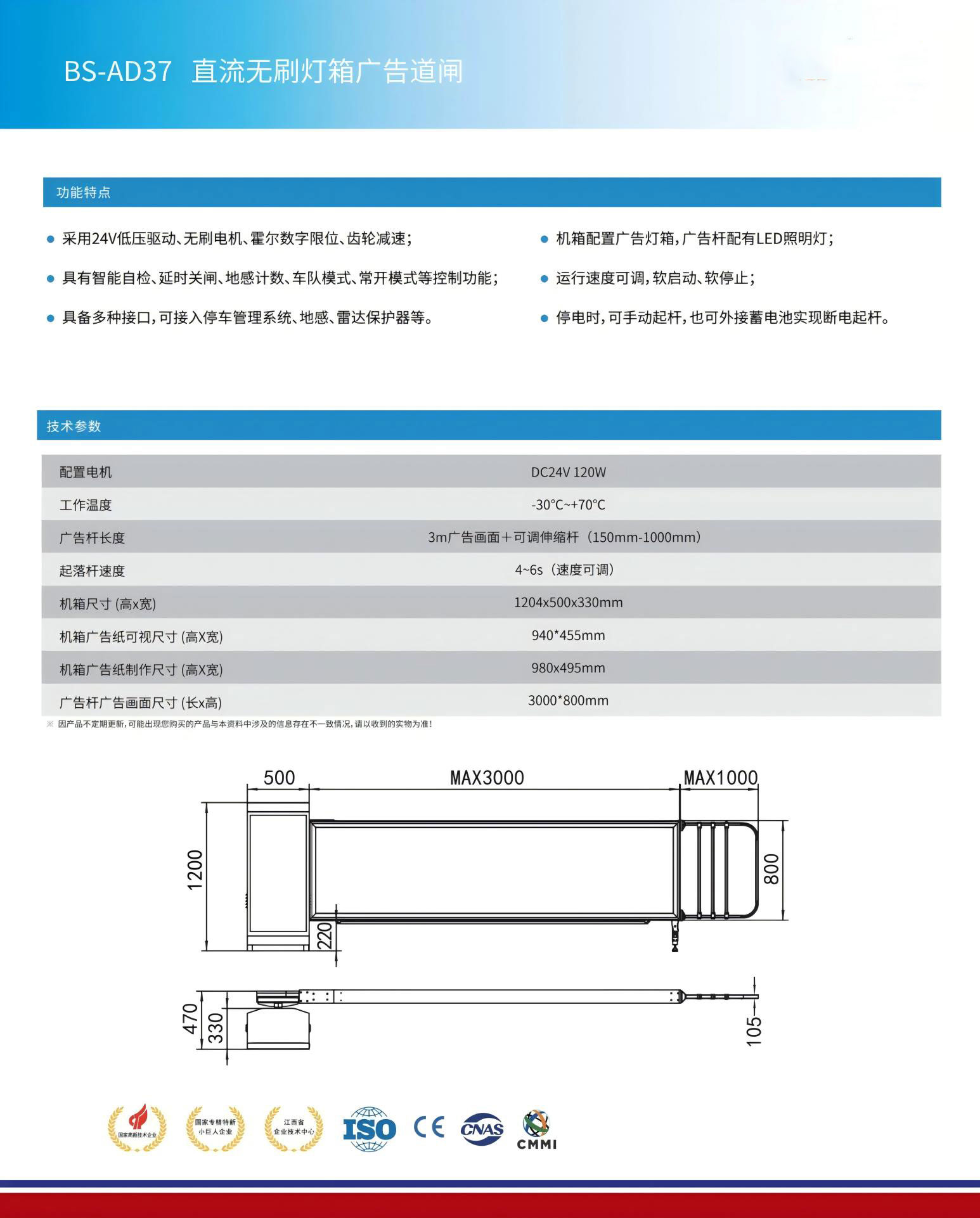 ● 機箱配置廣告燈箱,廣告桿配有LED照明燈;
